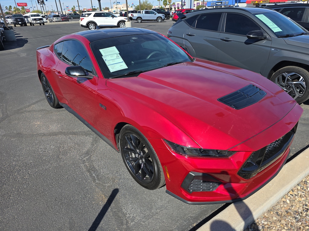 Safe and reliable, this Used 2024 Ford Mustang lets you cart everyone and everything you need in one vehicle. This Ford Mustang comes equipped with these options: ENGINE: 5.0L TI-VCT V8 -inc: stop/start system and Port Fueled Direct Injection (PFDI) (STD), Trunk Rear Cargo Access, Trip Computer, Transmission: 6-Speed Manual -inc: dual mass flywheel, twin disc clutch and rev matching, Tire Specific Low Tire Pressure Warning, Tire Mobility Kit, SYNC 4.0 QNX -inc: enhanced voice recognition, 13.2" touch screen in center stack, AppLink, 911 Assist and 2 smart charging USB ports, Strut Front Suspension w/Coil Springs, Streaming Audio, and Speed Sensitive Rain Detecting Variable Intermittent Wipers. Carry all your passengers in the comfort of every amenity in this trustworthy and dependable Ford Mustang. For a hassle-free deal on this must-own Ford Mustang come see us at Bill Alexander Ford Lincoln, 801 E 32Nd St, Yuma, AZ 85365. Just minutes away!