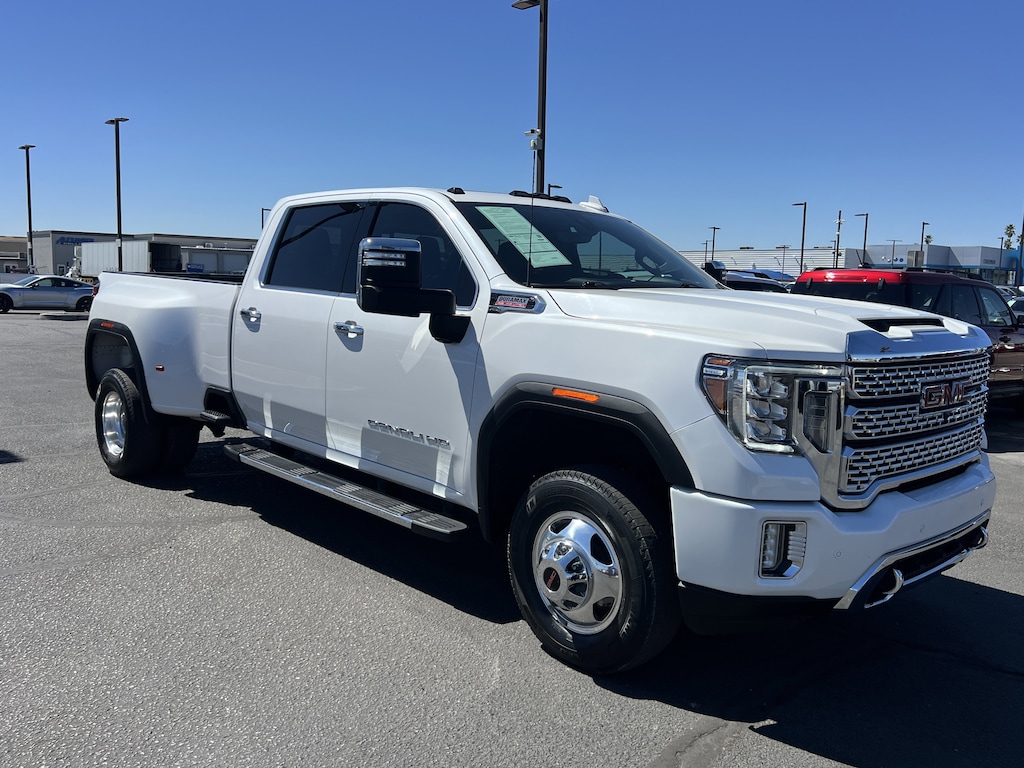 Tried-and-true, this Used 2022 GMC Sierra 3500HD Denali packs in your passengers and their bags with room to spare. This GMC Sierra 3500HD comes equipped with these options: WINTER GRILLE COVER, WHITE FROST TRICOAT, TRANSMISSION, ALLISON 10-SPEED AUTOMATIC, TIRE, SPARE LT235/80R17E HIGHWAY, TECHNOLOGY PACKAGE includes (DRZ) Rear Camera Mirror and (UV6) Multi-color 15" Diagonal Head-Up Display, SUNROOF, POWER, SEATS, HEATED SECOND ROW OUTBOARD SEATS (Standard on models built before 7-26-2021. Certain vehicles built on or after 7-26-2021 will include (RGJ) Not Equipped with Heated Second Row Outboard Seats, which removes (KA6) Heated Second Row Outboard Seats. See dealer for details.), SEATS, FRONT BUCKET WITH CENTER CONSOLE (STD), REAR CAMERA MIRROR inside rearview auto-dimming with full camera display, and REAR AXLE, 3.42 RATIO. Pilot the whole group in comfort and style in this tried-and-true GMC Sierra 3500HD. A short visit to Bill Alexander Ford Lincoln located at 801 E 32Nd St, Yuma, AZ 85365 can get you a hassle free deal on this dependable GMC Sierra 3500HD today!